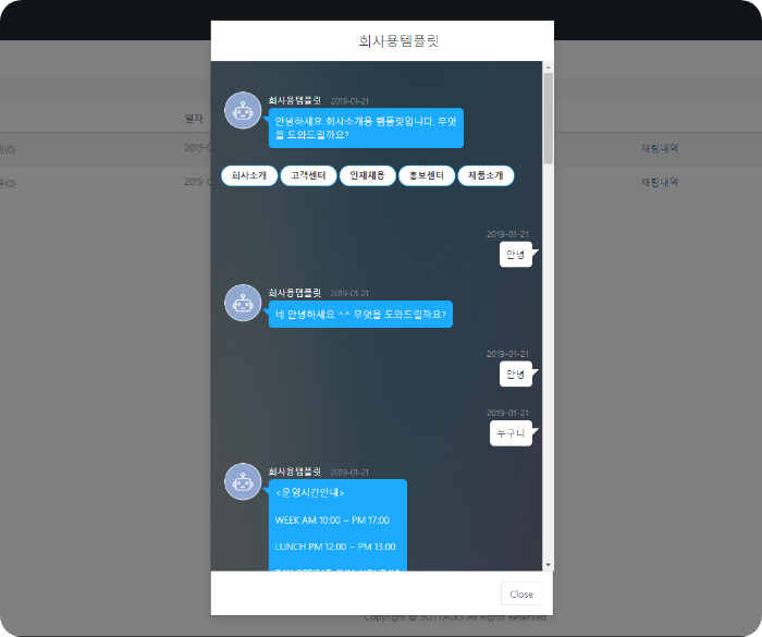 실시간으로 챗봇 상담중인 이력을 모니터링 할 수 있고 챗봇 상담 중 언제든 채팅 상담자가 개입할 수 있는 GUI를 제공합니다.